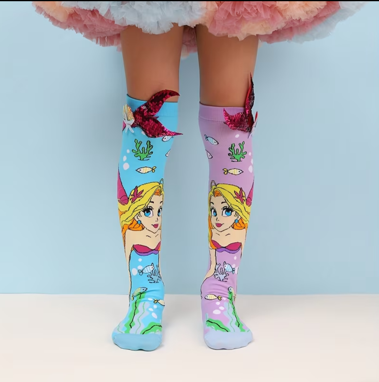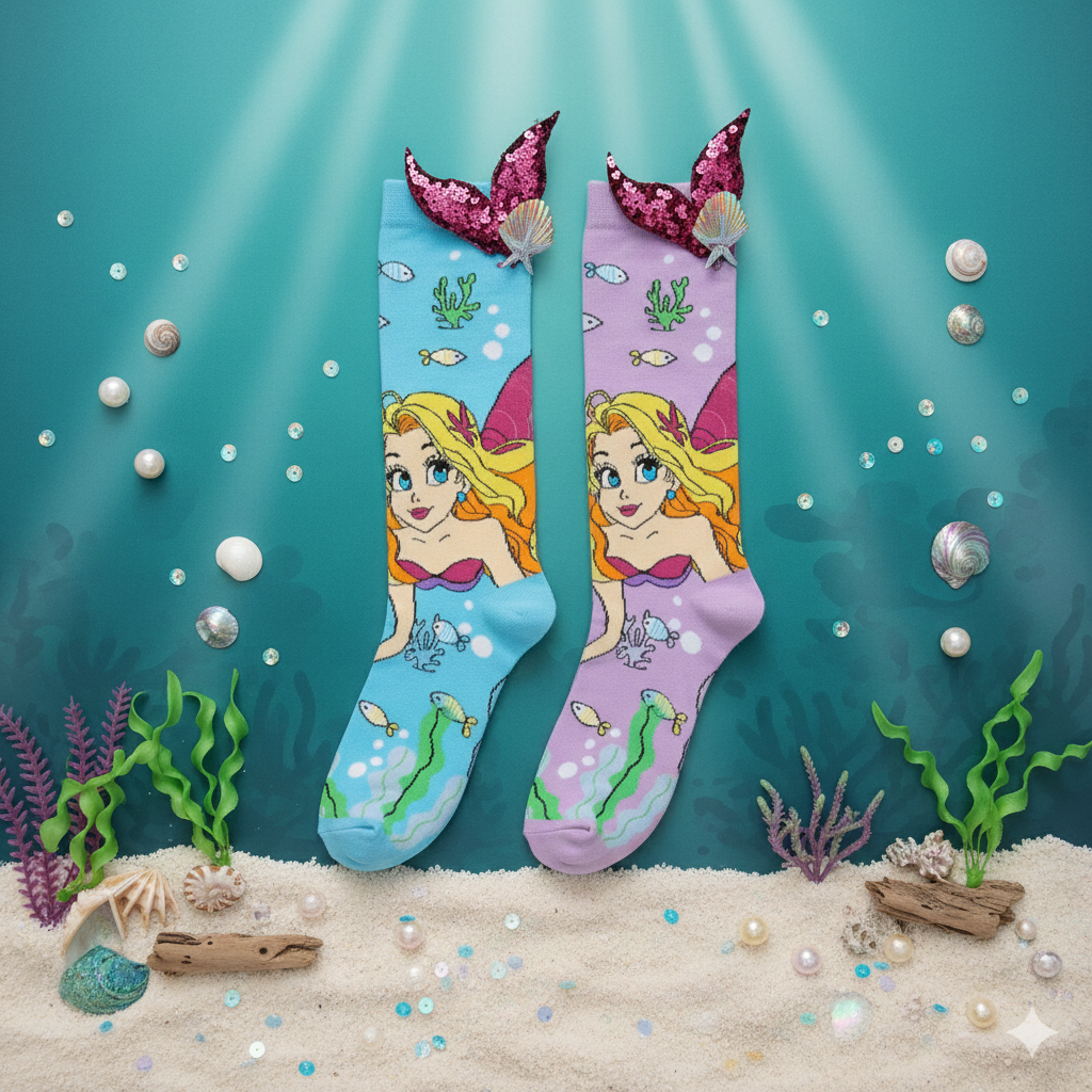 « Le secret des fonds marins révélé : offrez à vos pieds la magie d’une sirène avec ces chaussettes uniques, ornées de paillettes et de détails enchantés. »